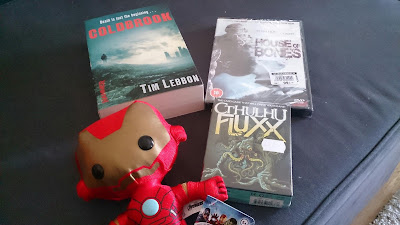 I födelsedagspresent av sambon fick jag en Iron Man-plushie (jag håller på att samla ihop alla Avengers) från SF-bokhandeln. När vi ändå var där passade jag också på att införskaffa en film (House of Bones med Charisma Carpenter!) och en bok (Coldbrook av Tim Lebbon). Lite skräcktema där.